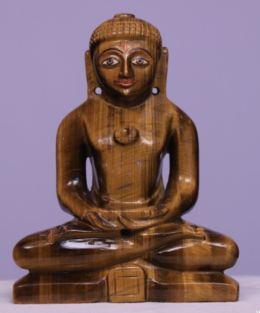 This chatoyant variety of Quartz has been very impressively carved into a beautiful statue. The fine lapidary work so apparent in the superb matching and contrasts of vertical and diagonal lines, well poised facial expressions and high luster polish create a unique alluring piece of art.