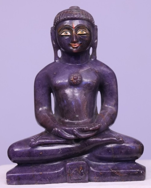 A mysterious and magnetic "Pujyaniya" Tirthankar statue in the rare gemstone verdite. The fascinating hue combined with fine lapidary craftsmanship evident in the perfect posture and proportion makes this a refreshing creation of art.