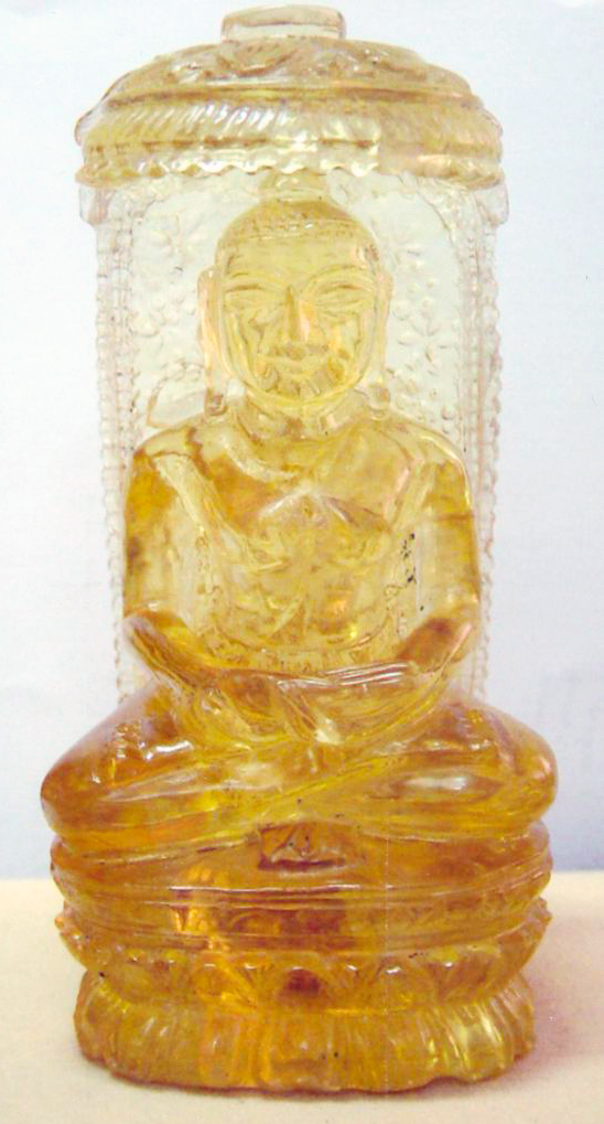 A classic "Darshaniya" statue in the Jurassic gemstone. Worth mentioning is the classic "Sinhasan" platform giving our statue an elevated appearance. Well chiseled facial features together with the divine "Chatri" covering the supreme being's head add a majestic feeling to the statue.