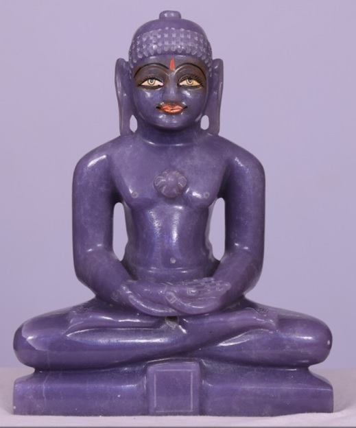 The very attractive, unique and mythical stone, Jade envisaged as a "Pujyaniya" Tirthankar statue. Perfectly placed hands, the ideal facial expression, together with the "Sinhasan" platform surely signify a pure soul.