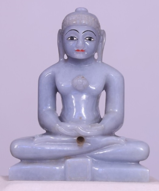 A grey blue "Pujyaniya" Tirthankar statue showcasing nobility and simplicity. Classic body proportions and calm and poised facial expressions add to the enticing statue.