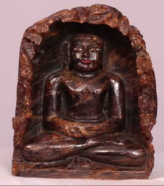 A brown magnificent Zircon rock captured as a "Darshaniya" Tirthankar statue. Hands well placed together with a perfect "Padmasan" posture