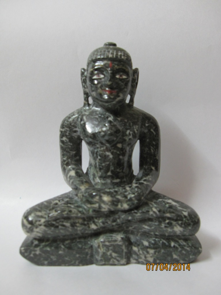 A black beauty in Jasper emitting calm, serene and enlightened feelings in the spectator. Facial expressions are very poised and add to the already proportionately carved body. Hands folded divinely add to the ultimate beauty of the deity.