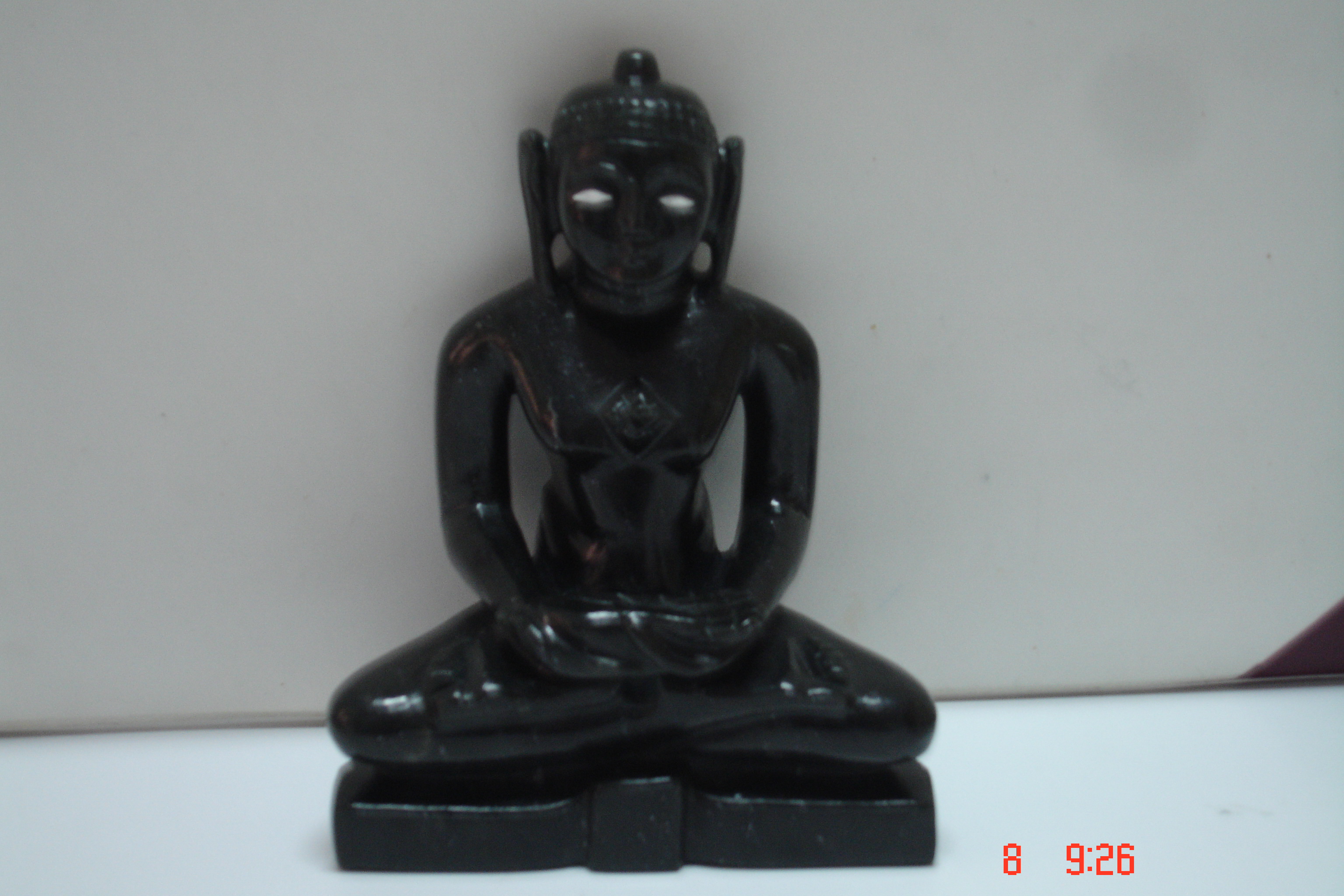 The banded beauty, Agate rock transformed into a mystic and charismatic Tirthankar statue. A perfect "Padmasan" posture adds an elegance and grace to the statue. Tranquil Facial expressions add to the overall beauty of the Tirthankar.