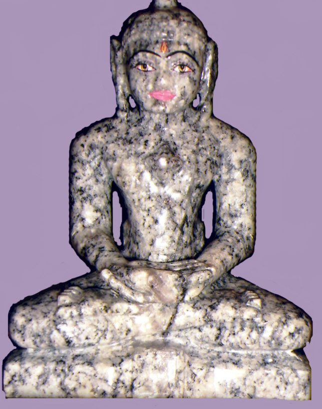 A deep grey Sphalerite statue with stunning accents of little color on the face. Classic body proportions add splendor to the majestic posture of the deity.