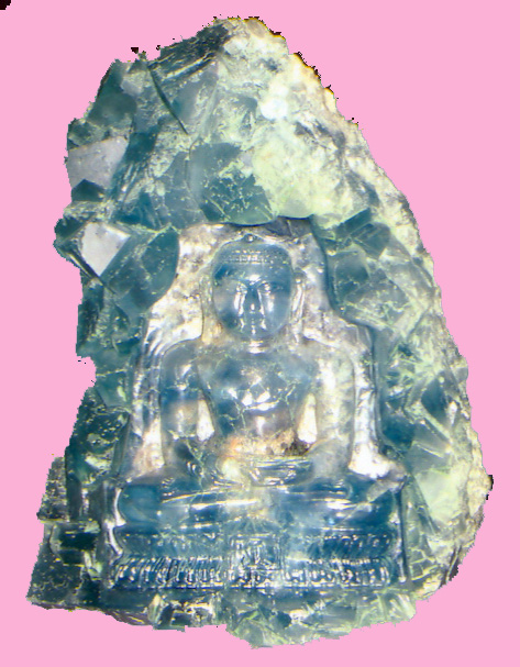 A cyan blue Fluorite Tirthankar statue carved admirably. Body proportions are very accurate and face seems very tranquil. The deity is surrounded by the rough mountains, signifying the deity deep in prayer.