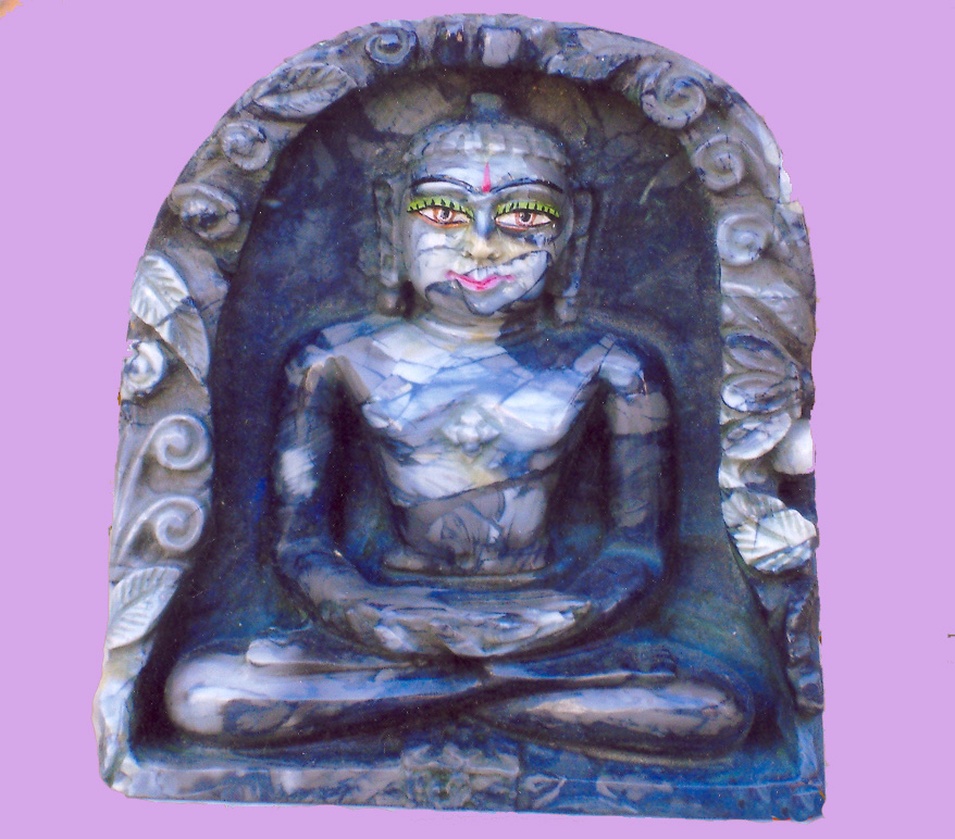 A divine and pristine beauty in the blue of opal: beautiful leaves and creepers surround the deity, who is deep in prayer. Facial expressions are very calm and composed, together with the accents on the eyes, lips and "Tilak". Hands and legs folded religiously in prayer.