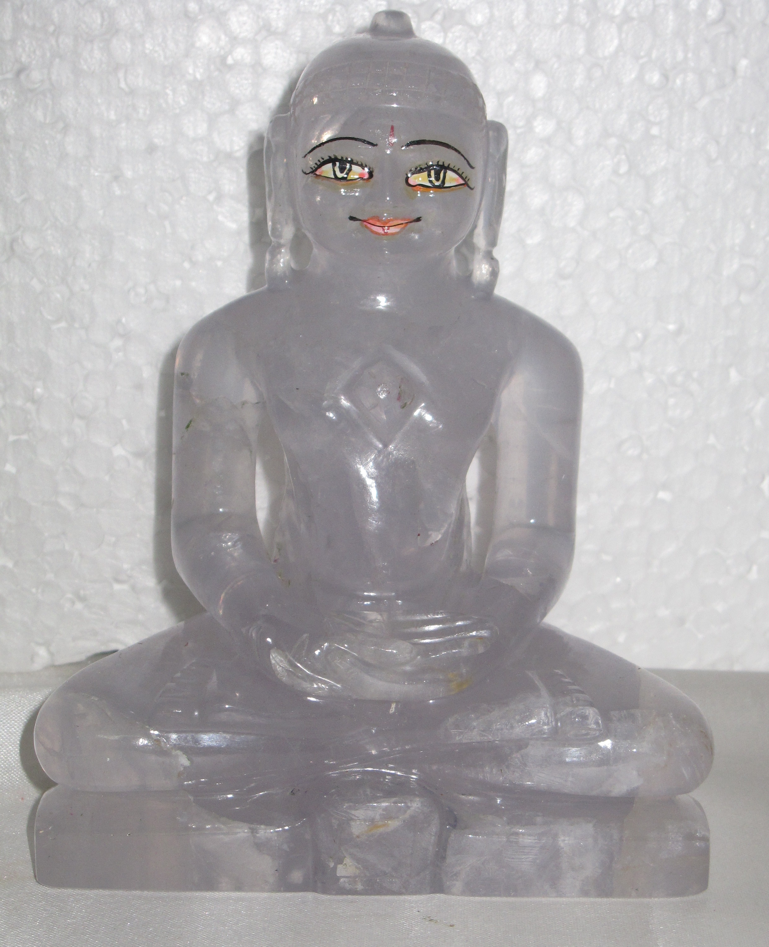 A charismatic lavender beauty carved exquisitely by the lapidary. The "Srivatsa" symbol on the chest adds to the aesthetic beauty along with the magnetic face. The eyes are deep in meditation together with the mesmerizing smile. A divine piece of art indeed.