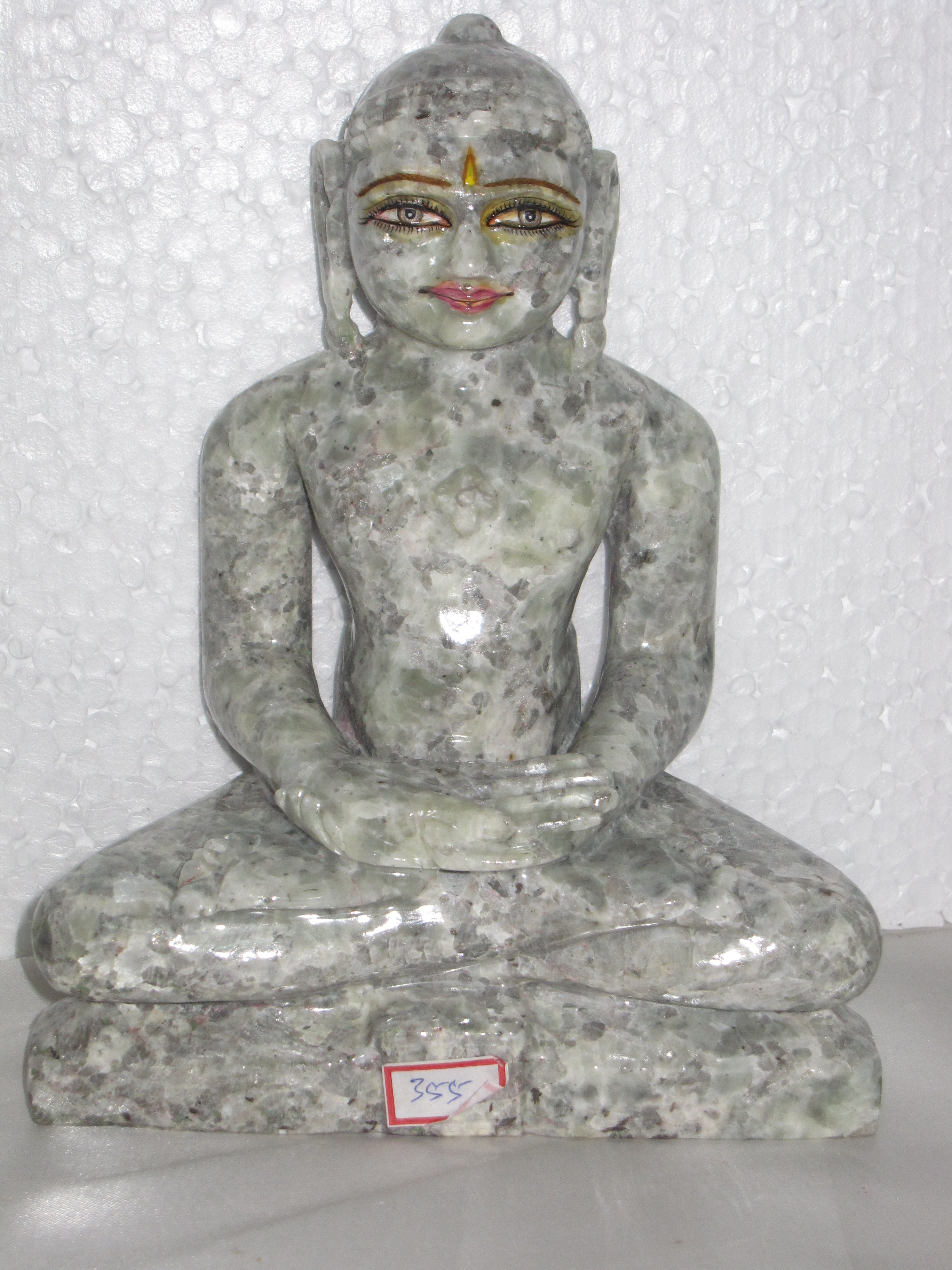 A peaceful and spotted Tirthankar idol carved enticingly by the lapidary. Exquisite facial expressions and a splendid smile highlight this classic piece of art.