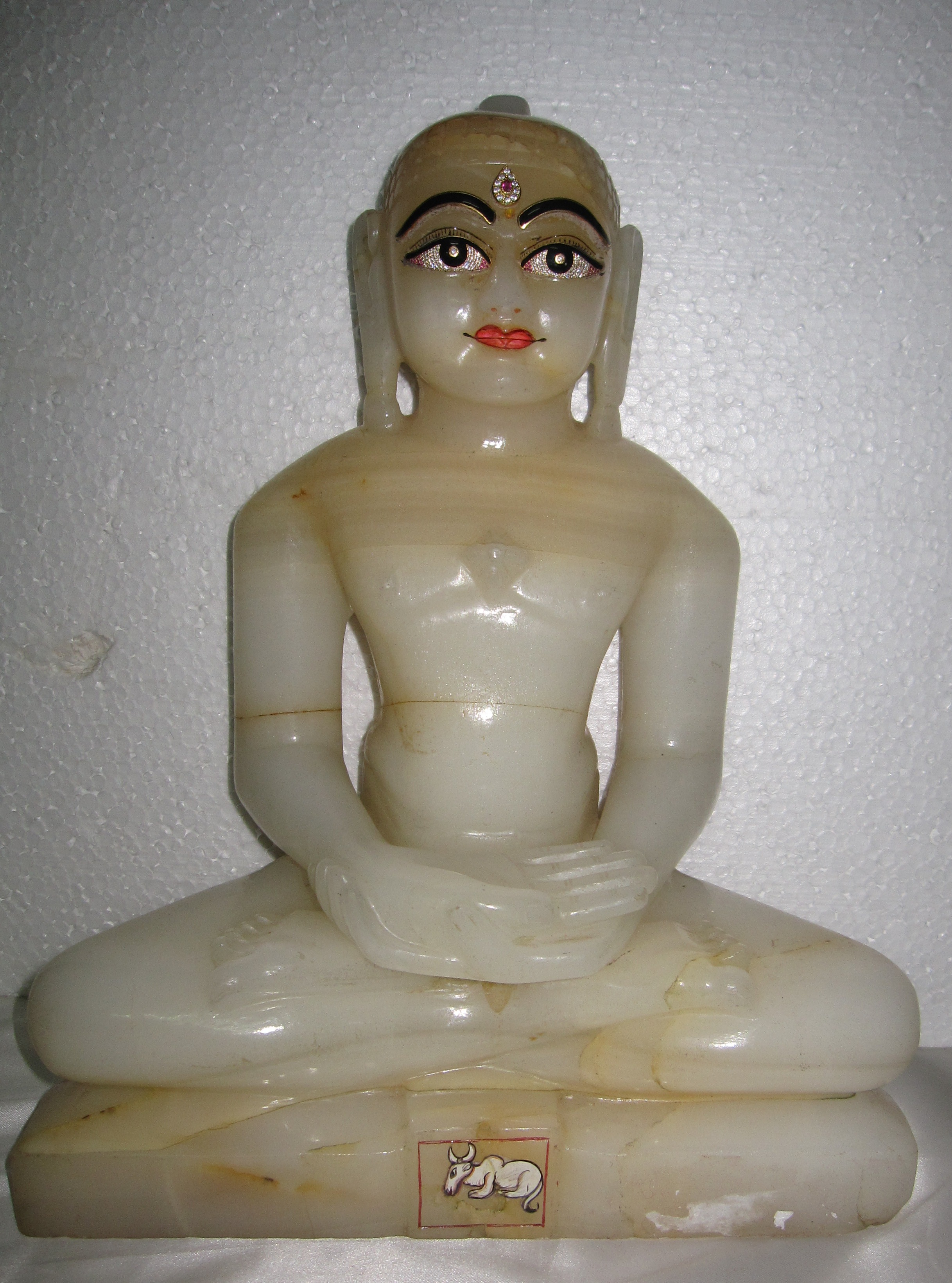 An enduring face with a tilak on the forehead and classic eyes and smile are the highlight of this pujyaniya Tirthankar statue. The body has been sculpted with perfect body proportions.