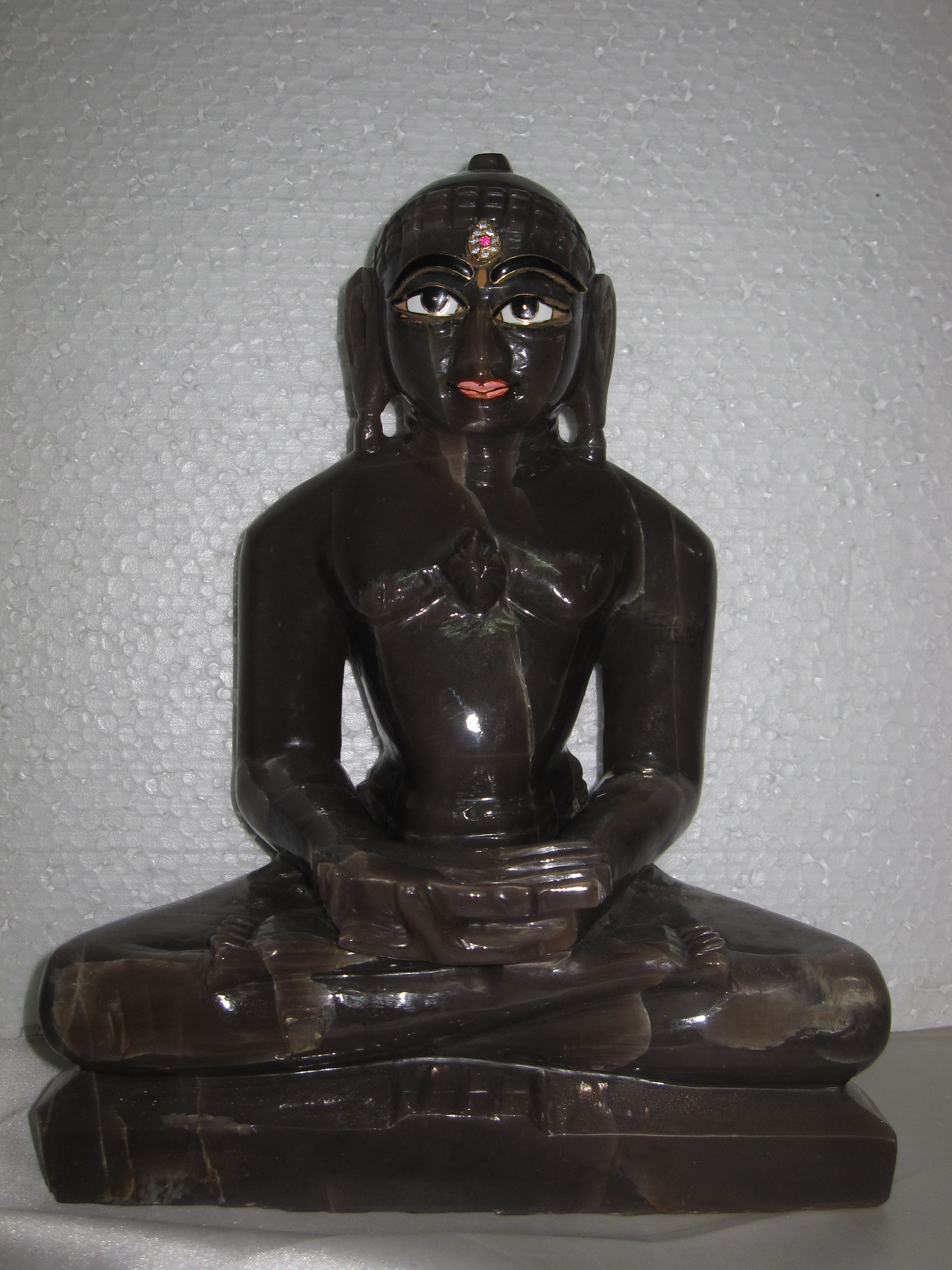 A divine piece of artistic splendor in saddle brown shaded Moonstone. A well-proportioned Srivatsa symbol on the chest along with a Sinhasan platform adds to the divinity of the statue.
