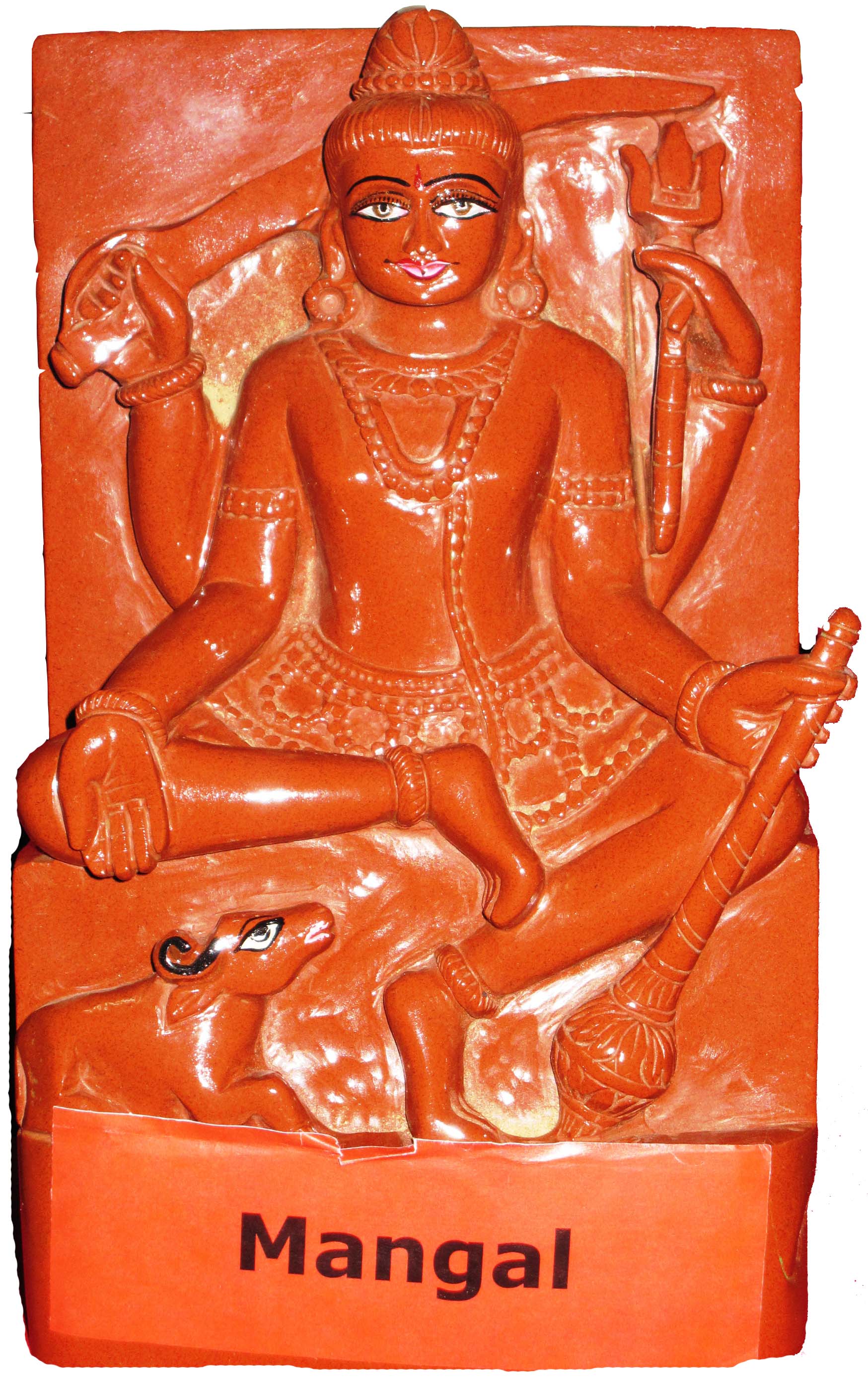 A classic deep red Mangal graha, depicting aesthetical beauty combined with classic facial features.