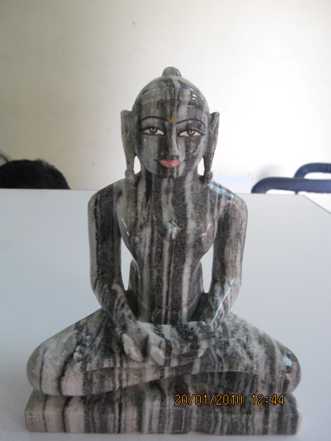 A vertical beauty in meteorite with placid facial expressions. Eyes are well defined and the smile absolutely divine. The srivatsa on the chest adds to the aesthetic beauty of the Tirthankar.
