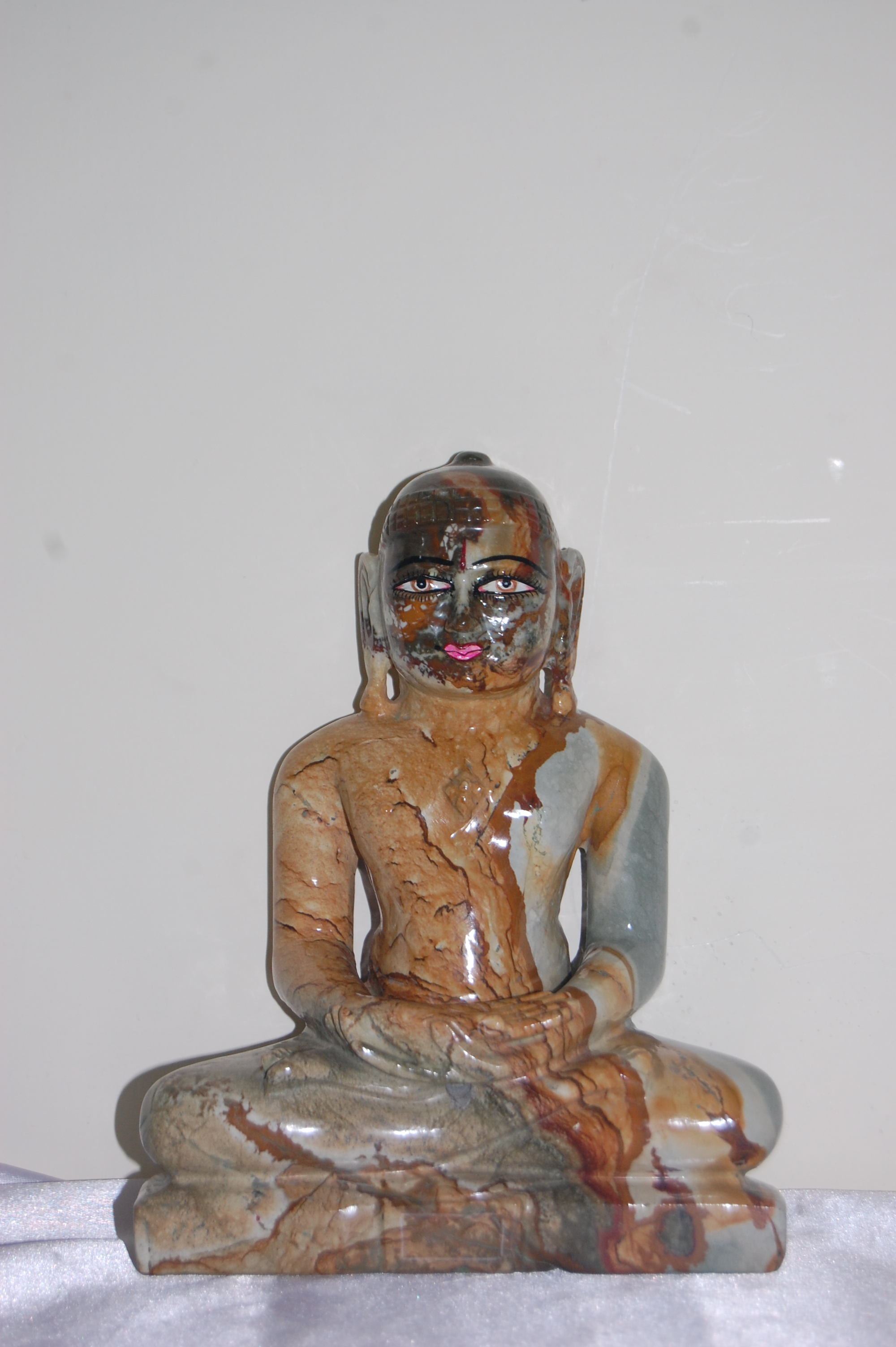 A multicolor extravaganza in luscious earthy tones. The face is well highlighted with accents in black and pink. Body proportions are well balanced by the lapidary.