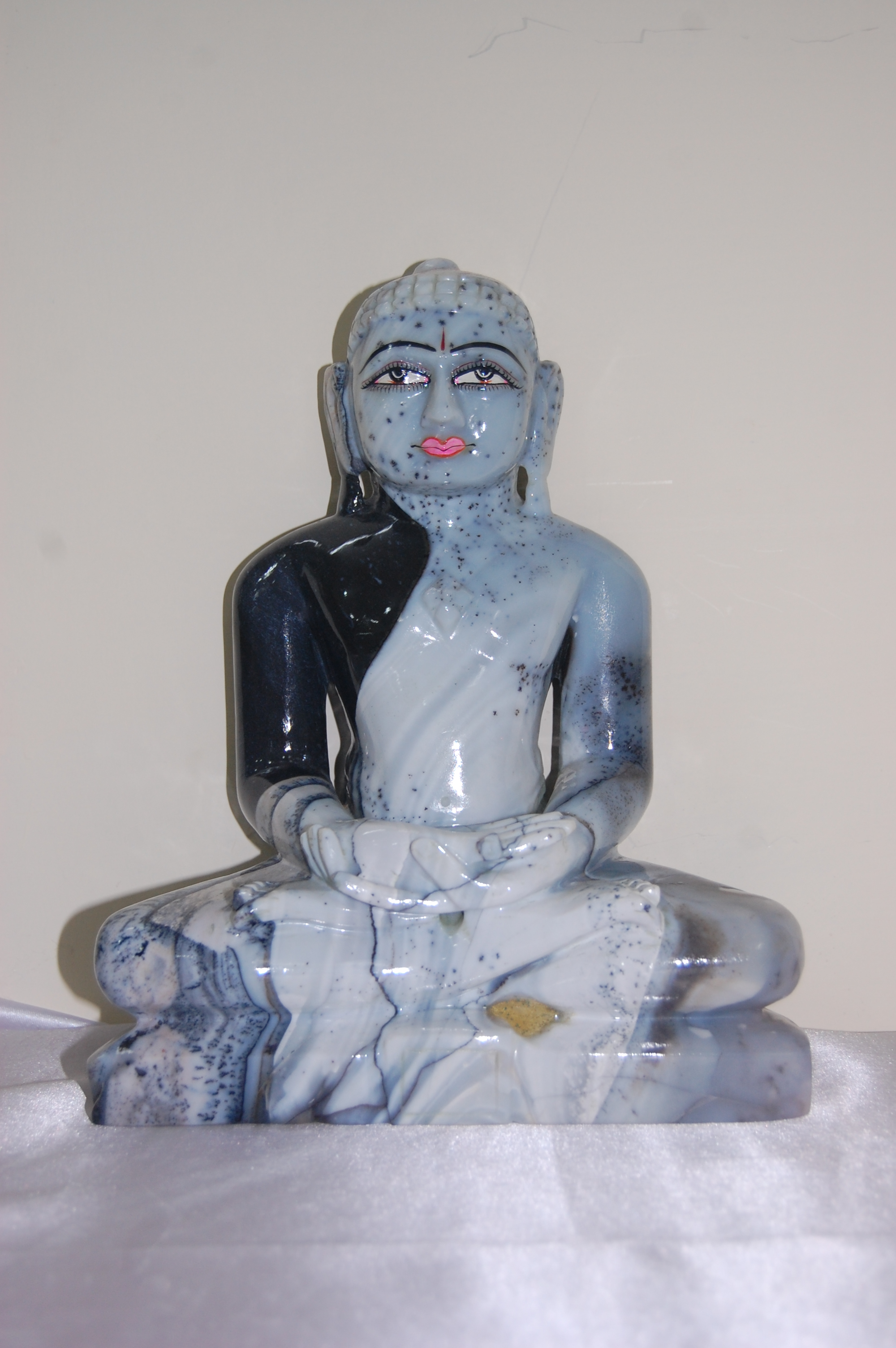 An artistic and modern blend of black and grey with interesting blends of dots and lines adds grace to this pujyaniya idol. A bold black edge on one side of the statue adds a mystic beauty to the statue.