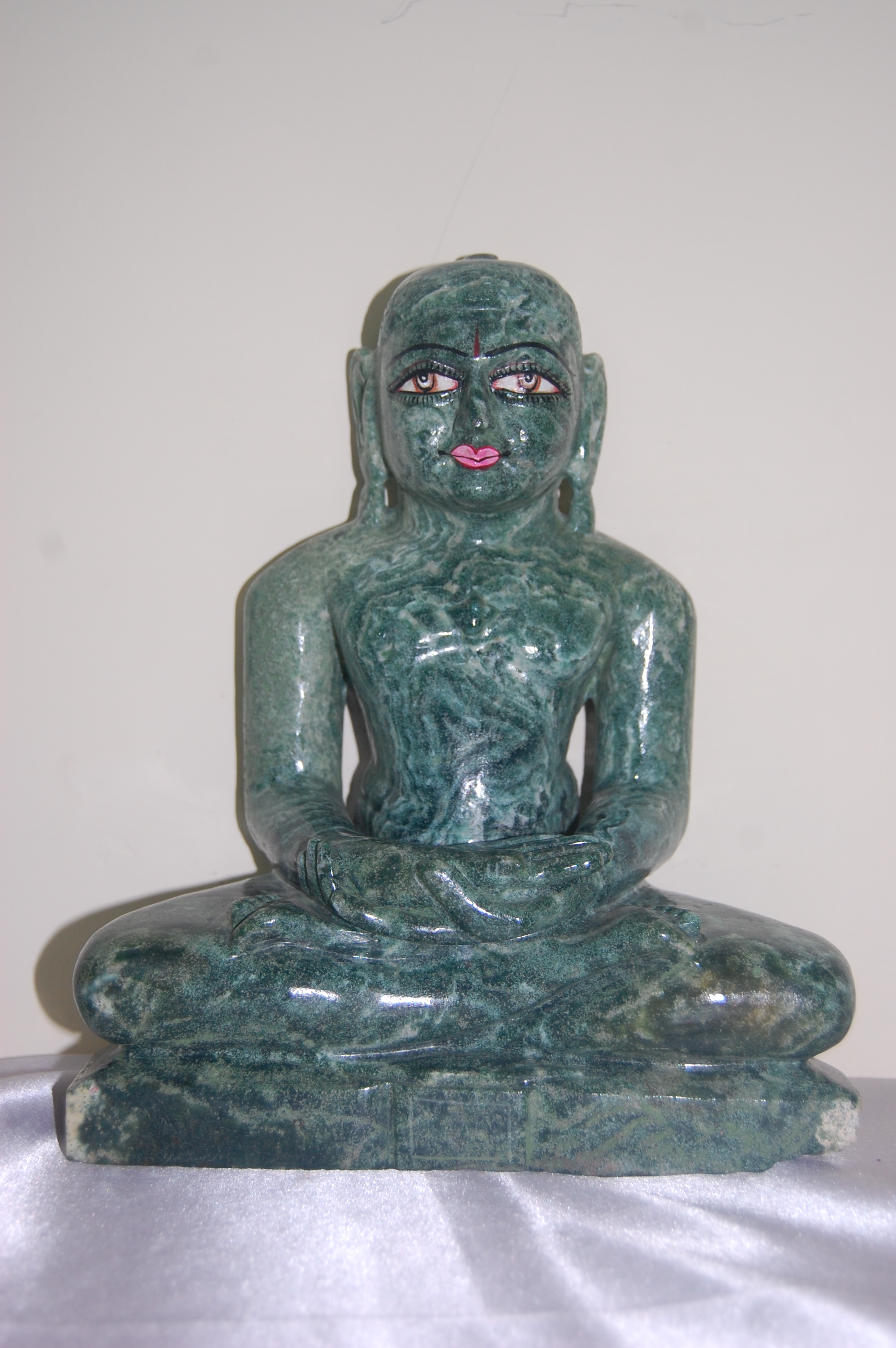 An admirable pujyaniya Tirthankar idol in the color representing balance, harmony and hope. Energetic and poised facial features combined with a perfect Padmasan posture add vitality to the statue.