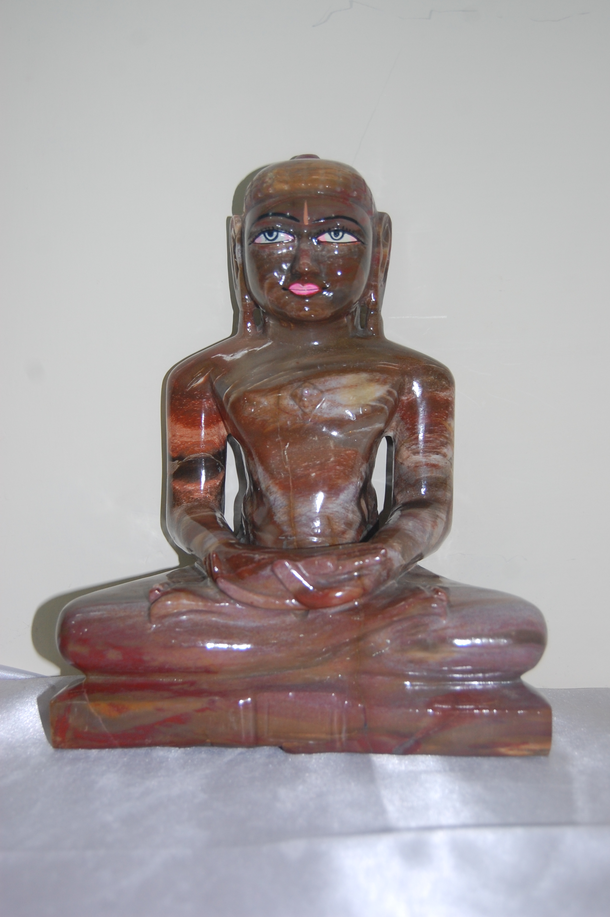 A harmonious swirling entices the viewer in this pujyaniya Tirthankar idol. Colours amalgamations are vivid and splendid. The body is very proportionately sculpted by the lapidary.