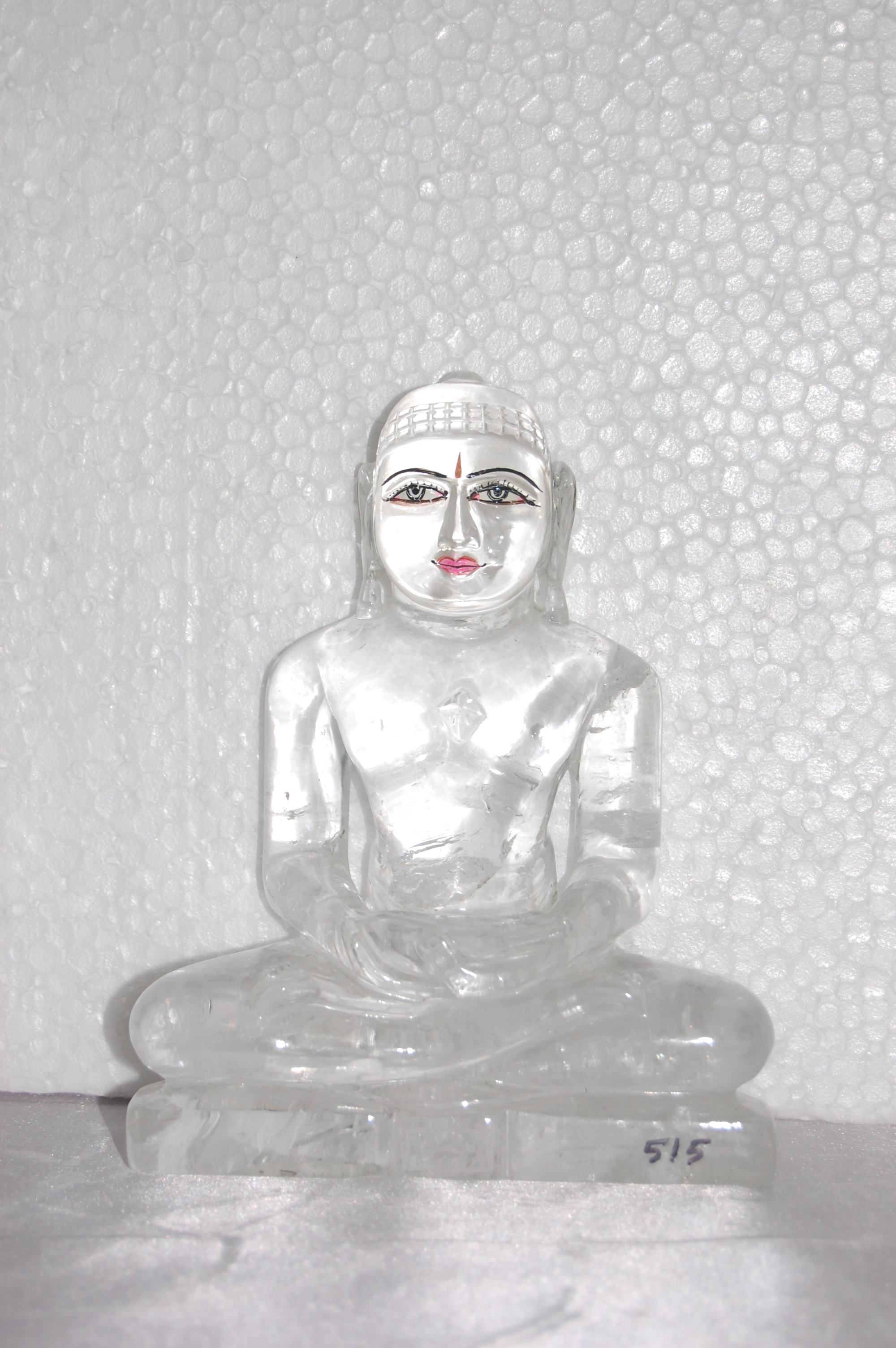 A divine crystal Tirthankar statue constituting the "chovisi"carved very artistically. The face is very expressive with exceptionally divine eyes and a great smile.