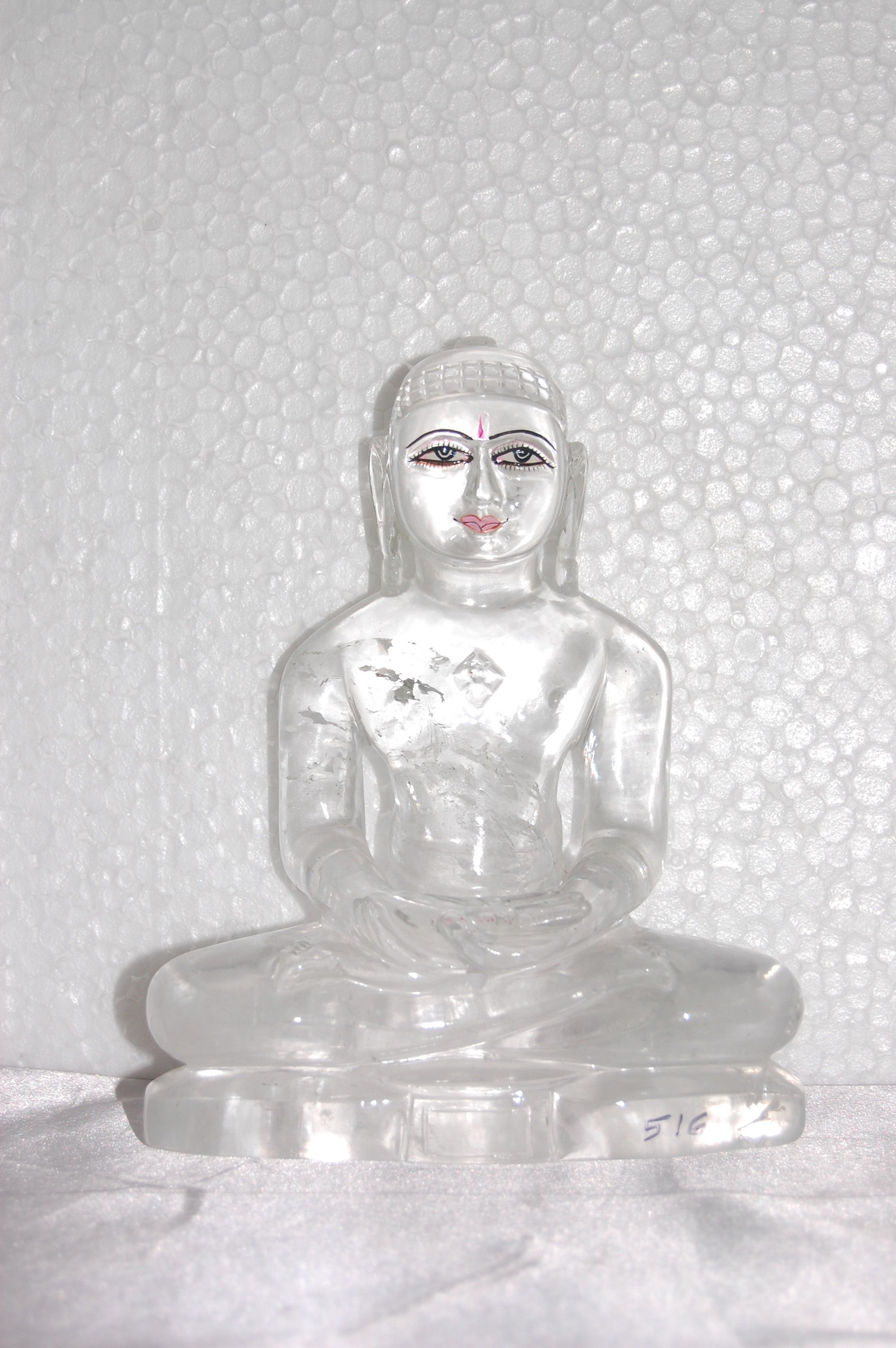 A divine crystal Tirthankar statue constituting the "chovisi"carved very artistically. The face is very expressive with exceptionally divine eyes and a great smile.