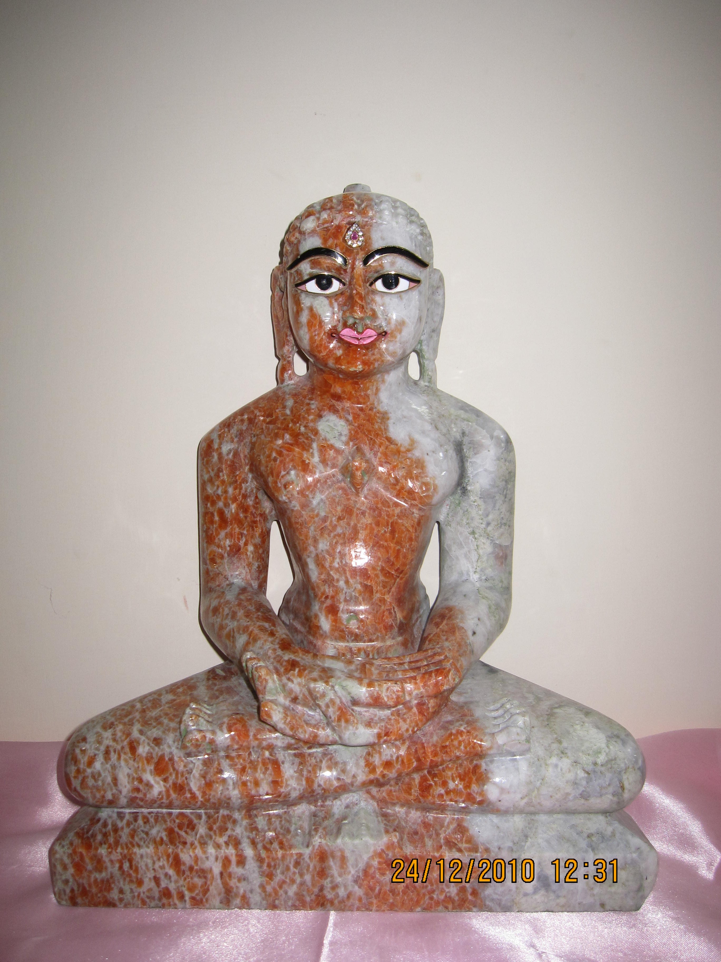 A dual colored Tirthankar statue in classic earthen tones. The face is well defined with beautiful facial features. Classic proportions of the body parts add to the beauty of the statue.