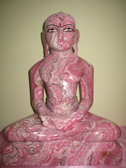 A striped extravaganza in classic pink with the most divine face and facial features. The hands and legs are folded in deep prayer and meditation.