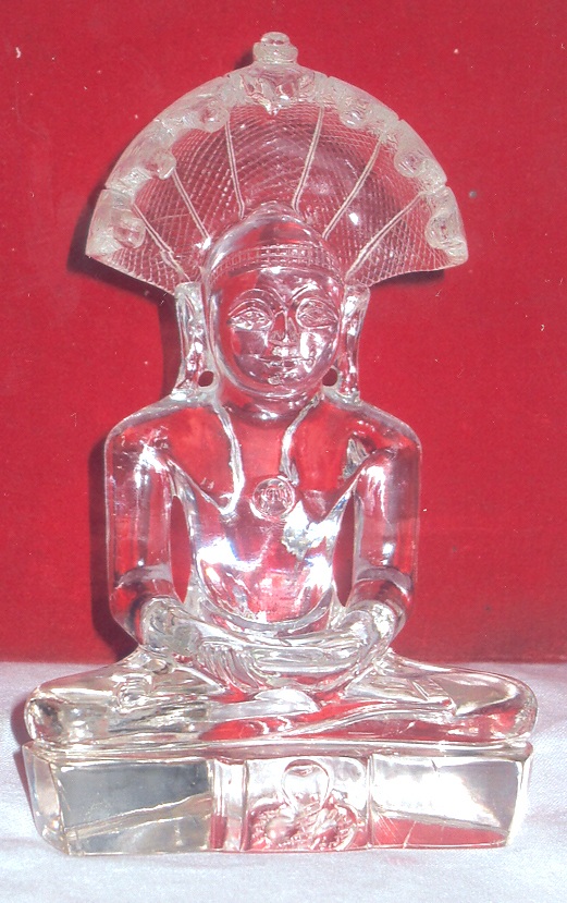 A divine and pure Parshwanath statue with beautifully carved "fana" on the deity’s head. The deity is seated comfortably on a sinhasan platform.