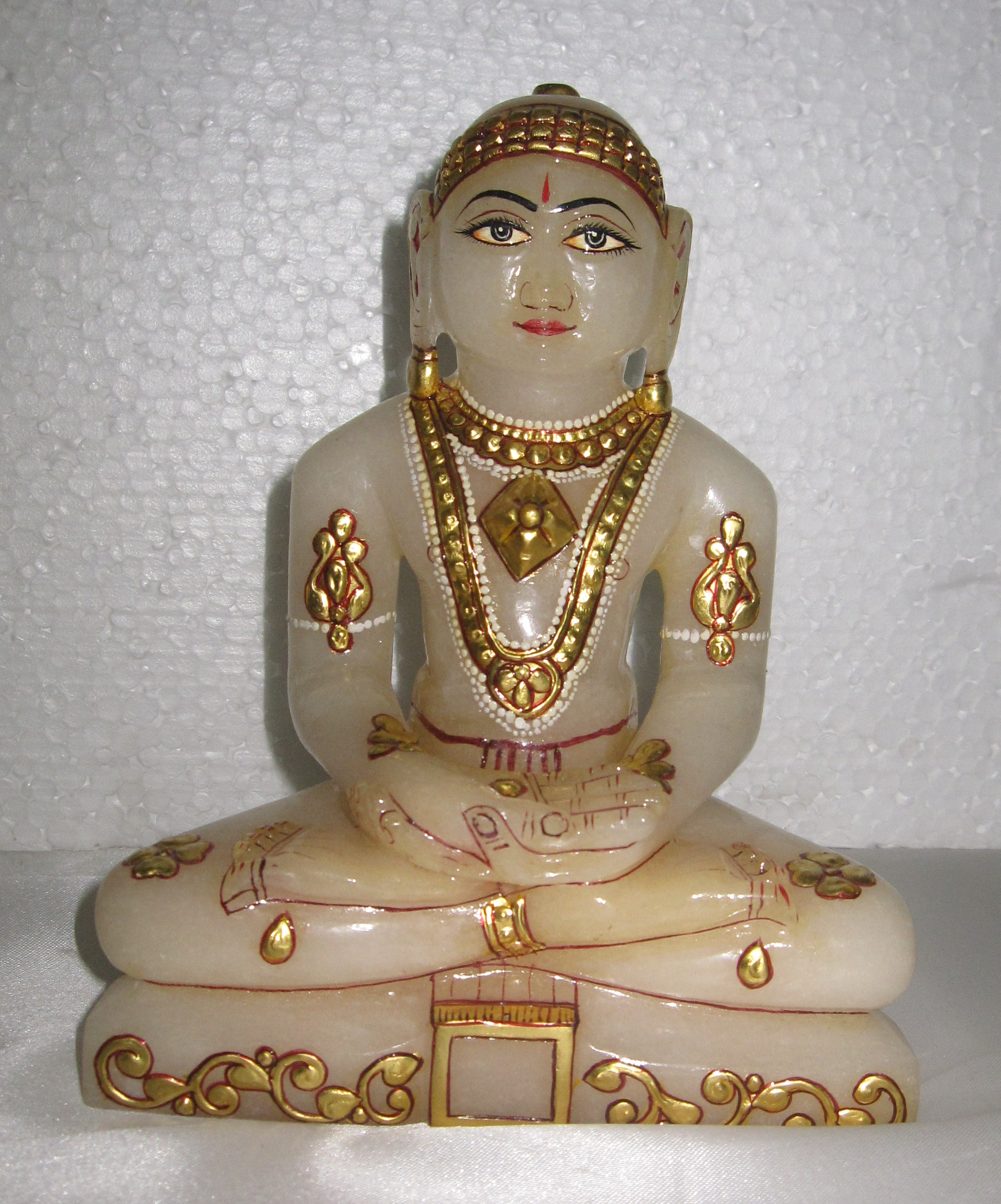 A poetic ensemble in cream with classic golden accents in jewelry adds grandeur to the statue. The eyes are divine and so is the smile.