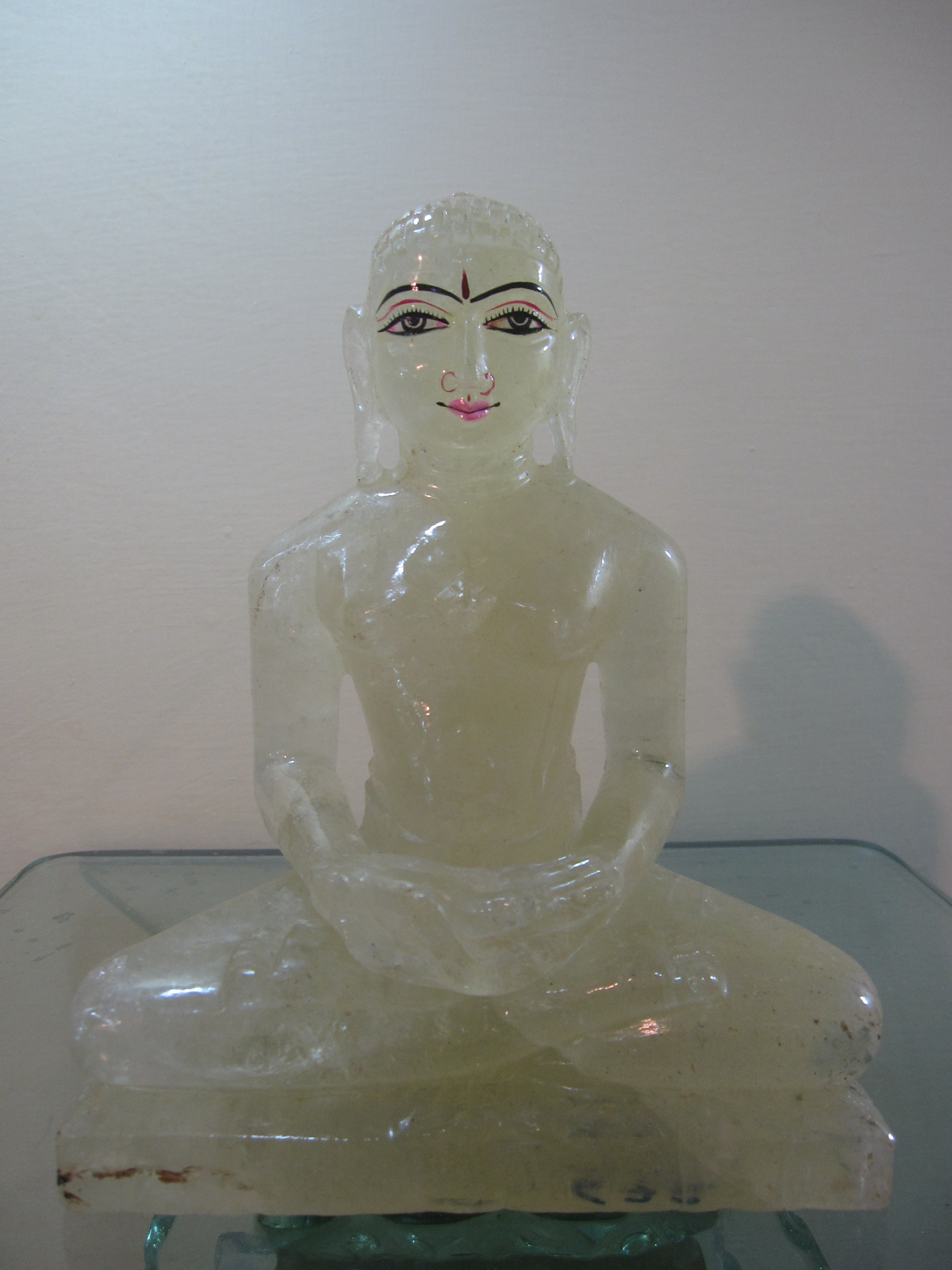 A creamy whitish serene Tirthankar idol stretching the purity and divinity of white to the limits. A very well carved and chiseled statue with well-expressed facial features.