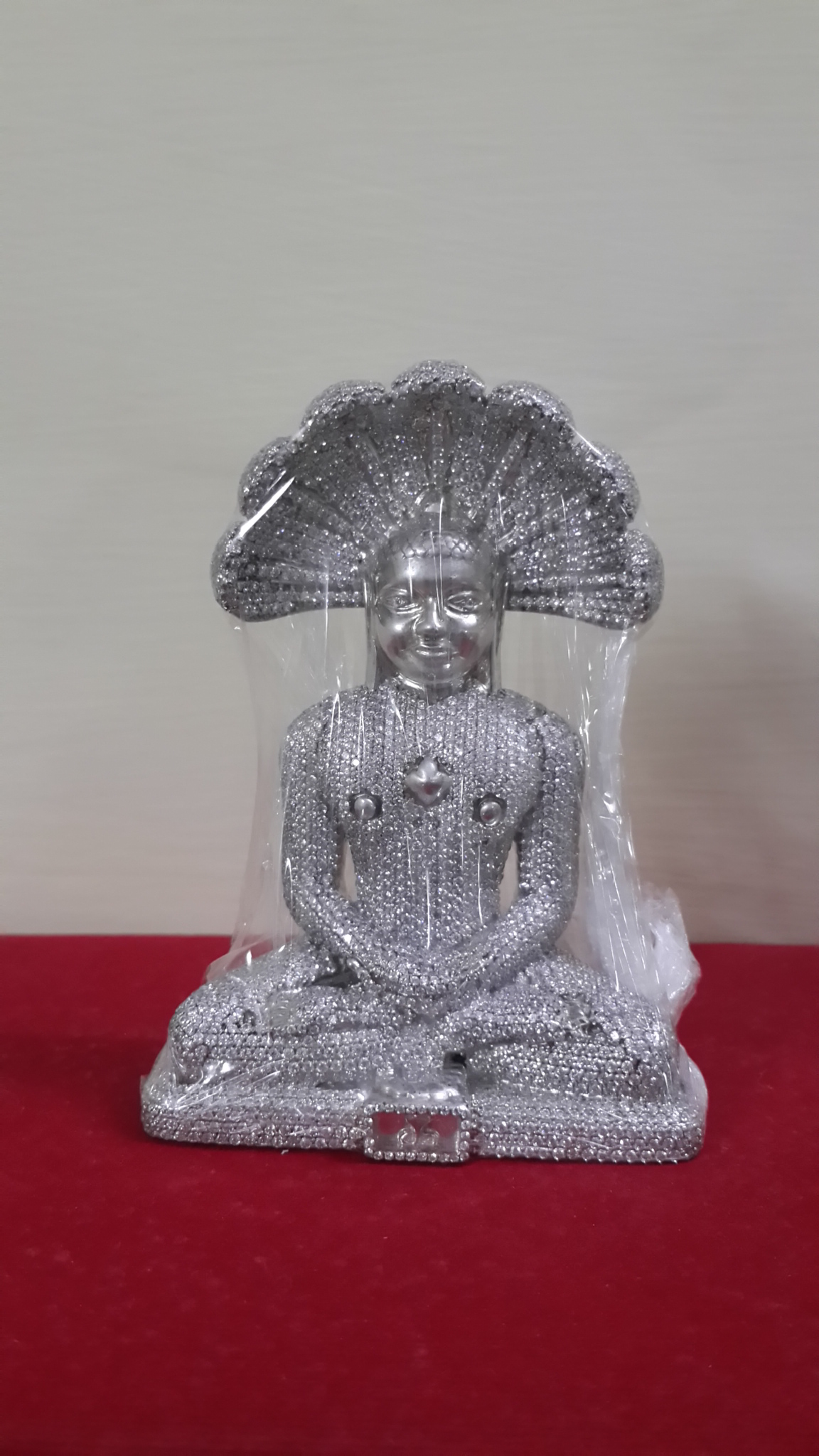 A classic studded beauty in Cubic zirconia with an enormous snake head and a face so expressive! A perfect Padmasan posture adds to the stunning of the divine statue.