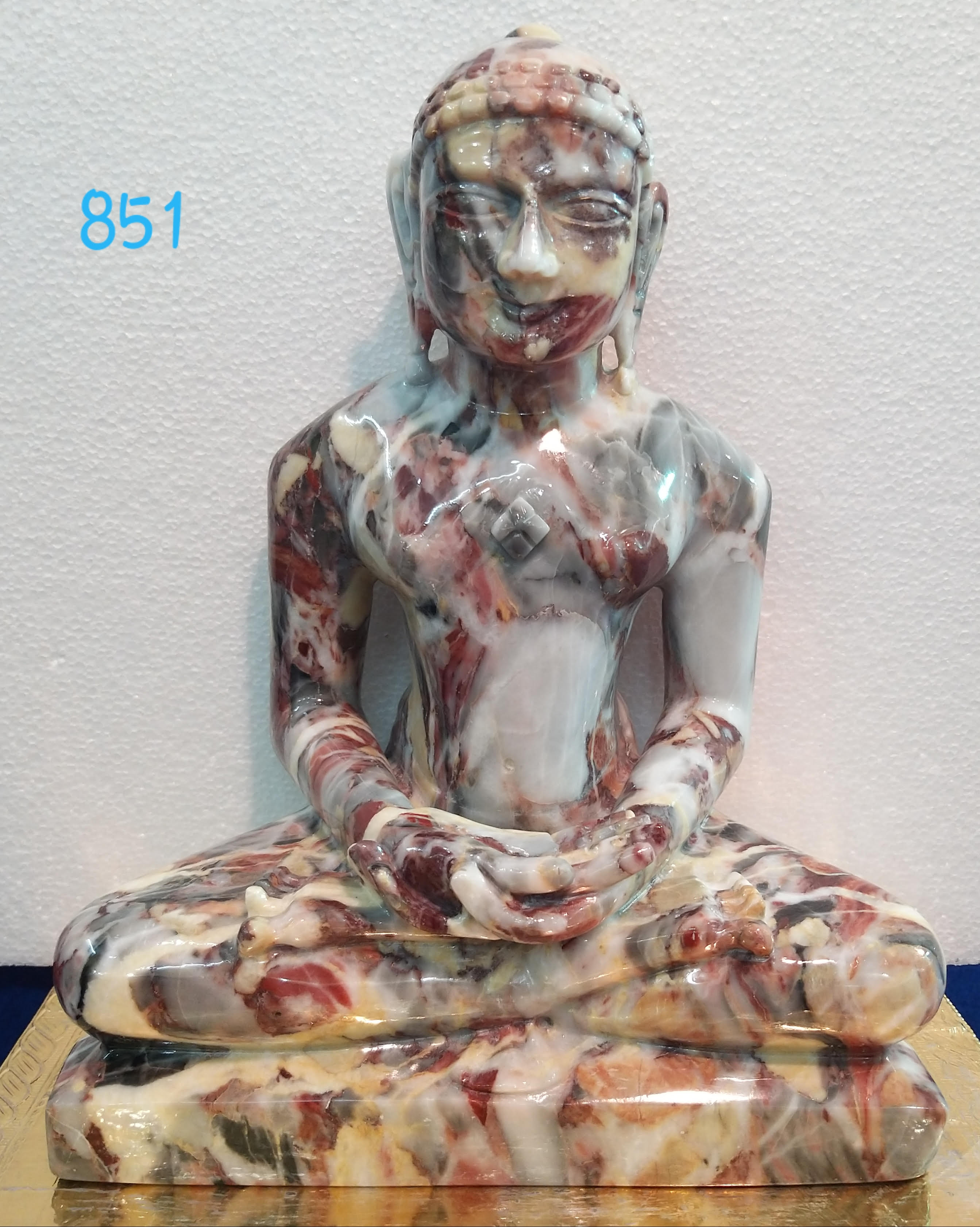 An exquisite blending of various colors provides the divine idol with a cooling effect to the eyes. The marbleized appearance adds more life to the calcite rock statue. An amazing masterpiece depicts the emergence of the pure Tirthankar idol.