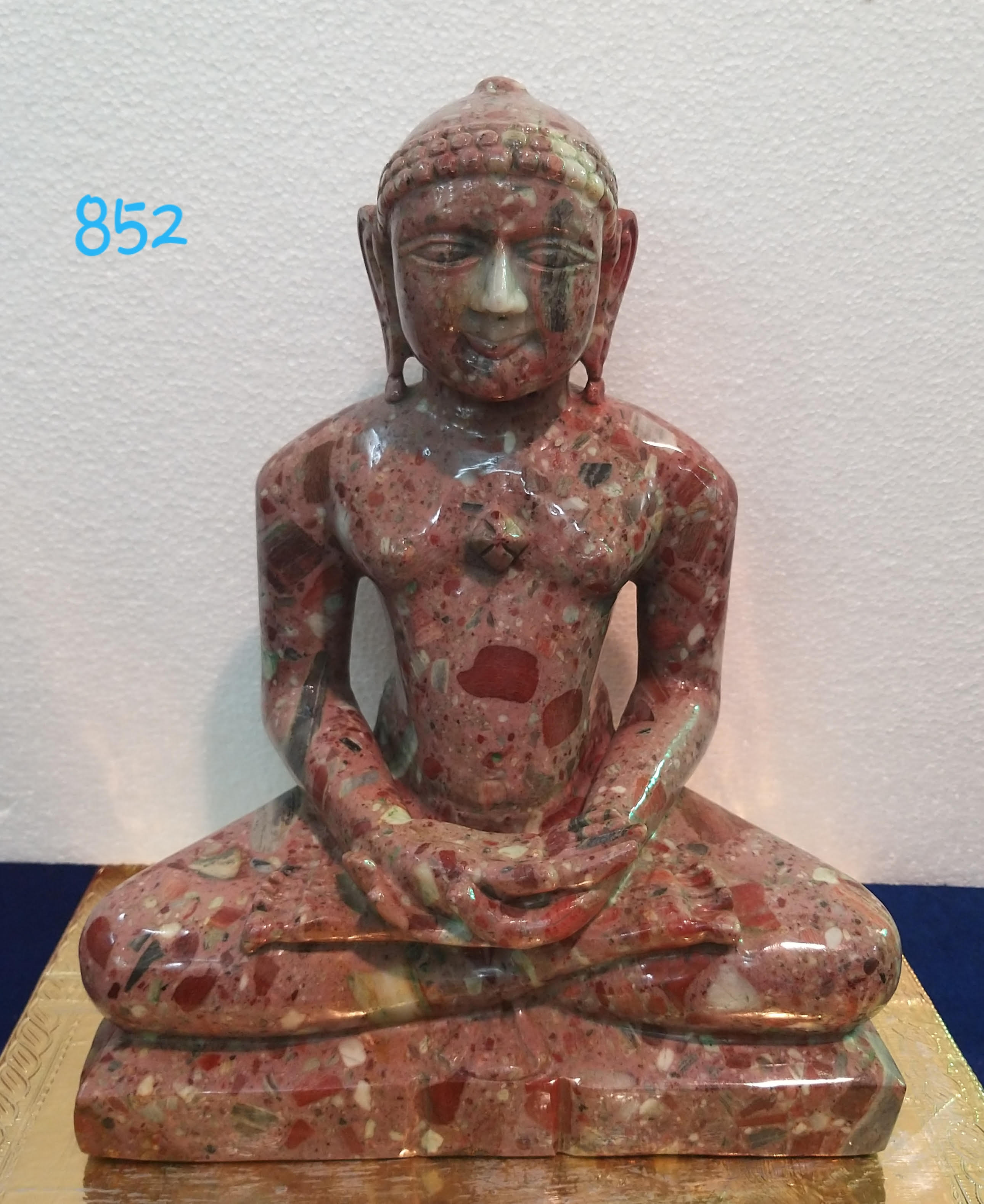 An exquisite blending of various colors provides the divine idol with a cooling effect to the eyes. The marbleized appearance adds more life to the calcite rock statue. An amazing masterpiece depicts the emergence of the pure Tirthankar idol.