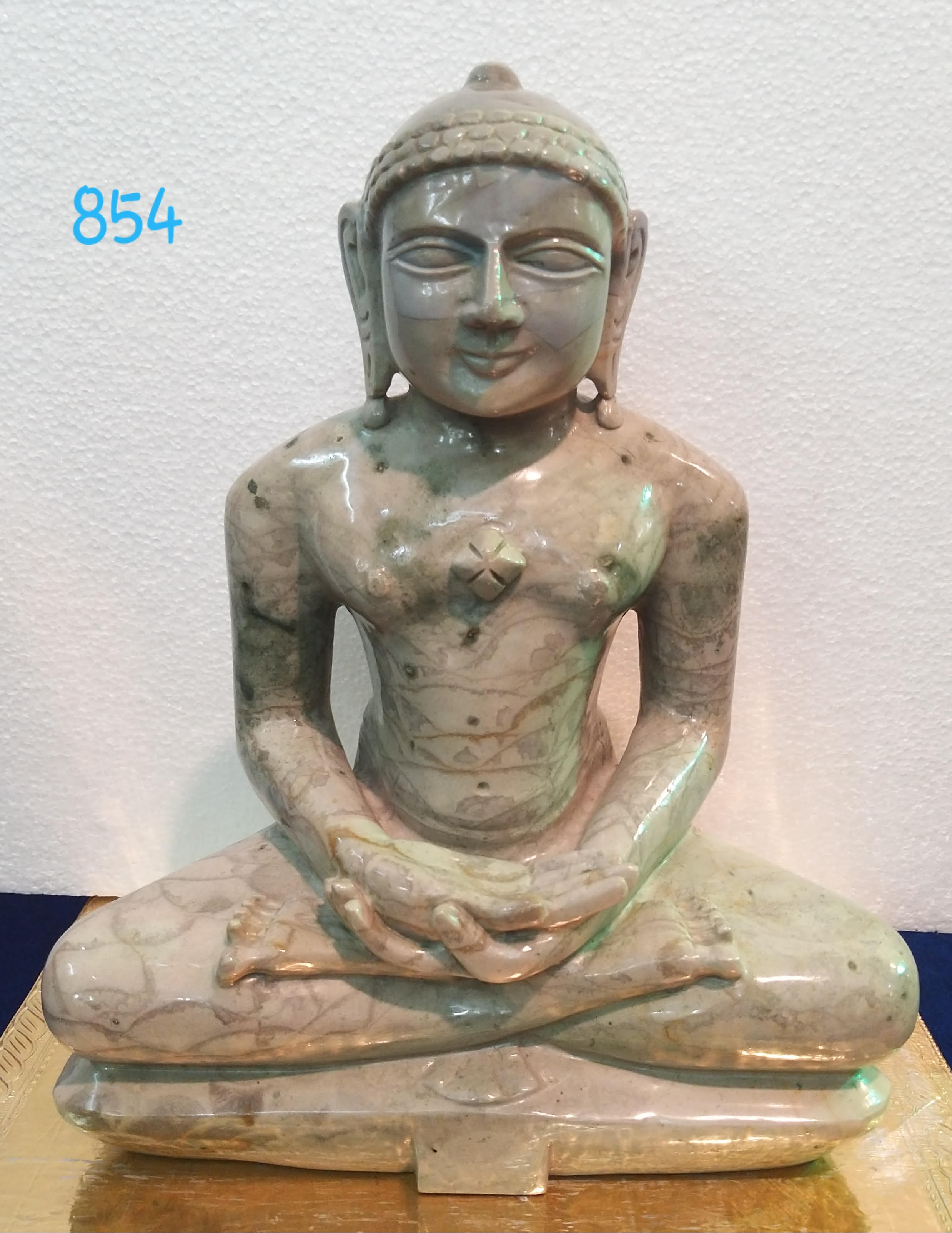 A mezmerizing brown statue immersed with a hint of green radiates a pure light. Calm and tranquil expressions together with well distinguished body features make this a unique piece of art. Perfect "padmasan" posture adds to the exquisite overall composition of this beautiful idol.