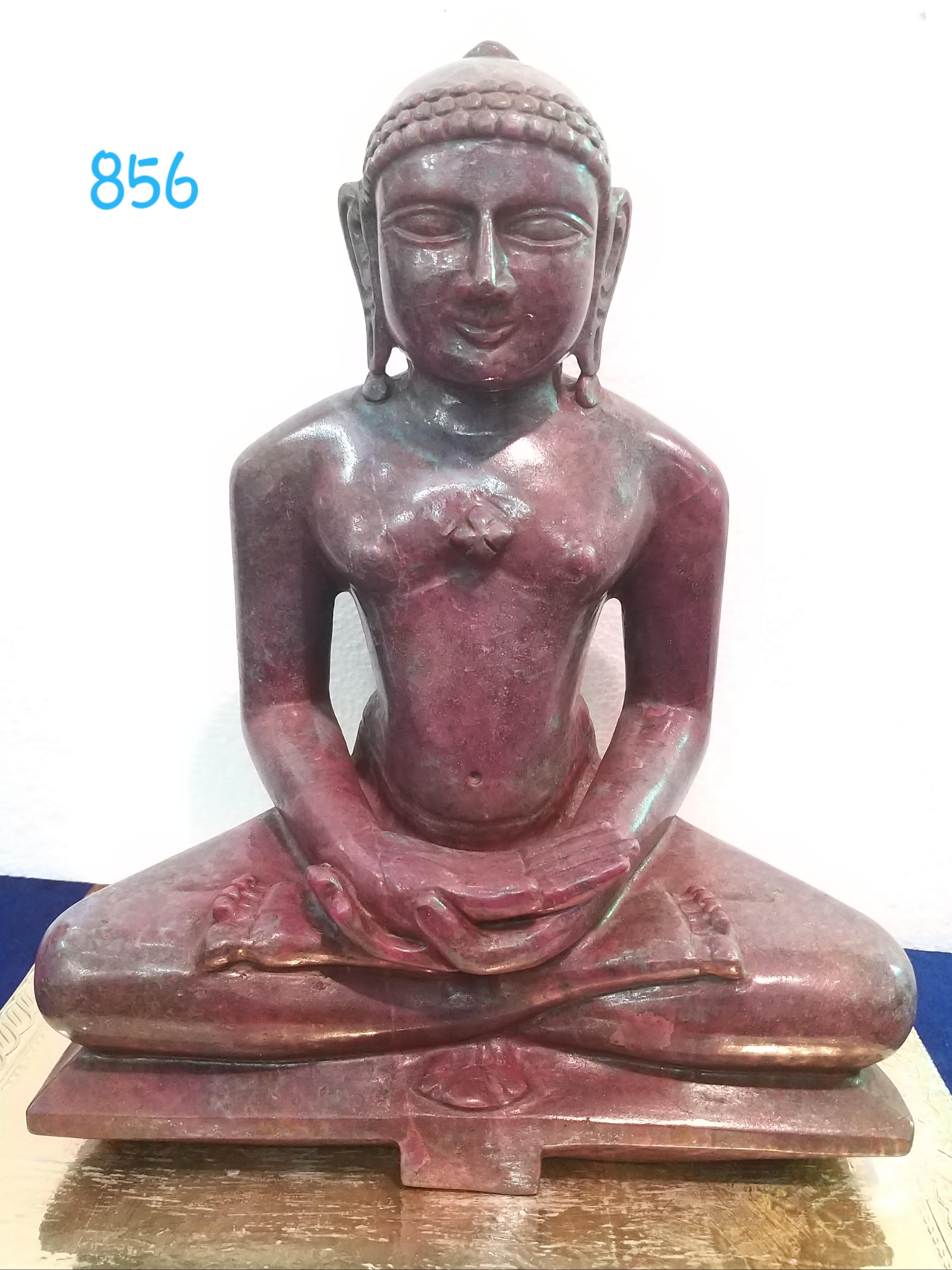 Brilliantly blended shades of brownish red and blue define this pretty statue. The calm poised and serene facial expressions along with elongated ears and fingers make the idol complete in its beauty. The radiant quality of the natural ruby draws your attention to this fine masterpiece. Tirthankar meditating in Padmasan posture creates a pure and divine image in eyes of the devotee.