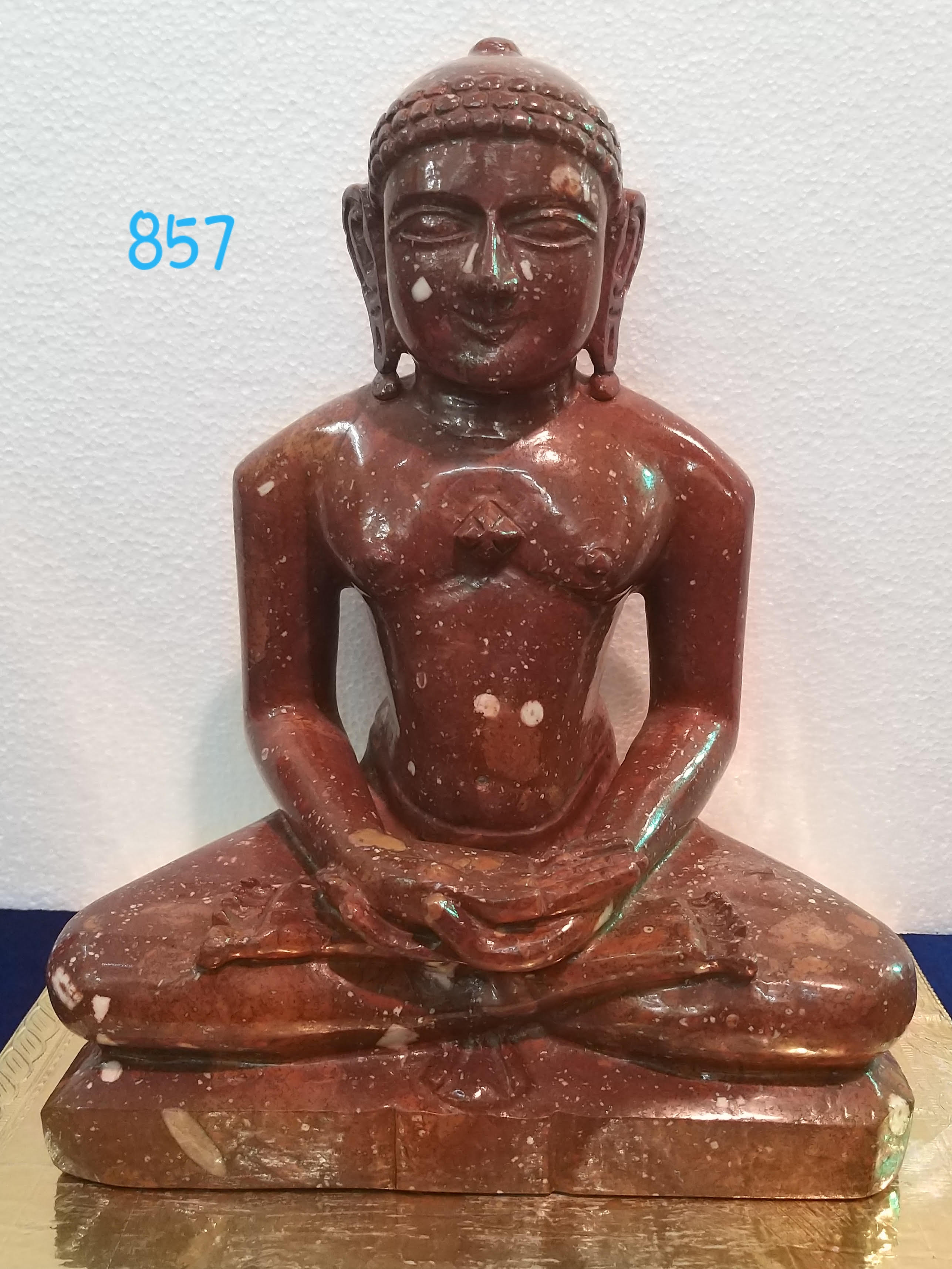 This extraordinaire idol is characterized by a pleasant smiling face and eyes filled with purity. The brown calcite rock magnificently displays the Tirthankar Bhagwan’s divine and supreme status. The idol has been exquisitely sculpted as seen by the elongated fingers and feet. The Srivasta symbol and Sinhasan platform add to the beauty of the statue.