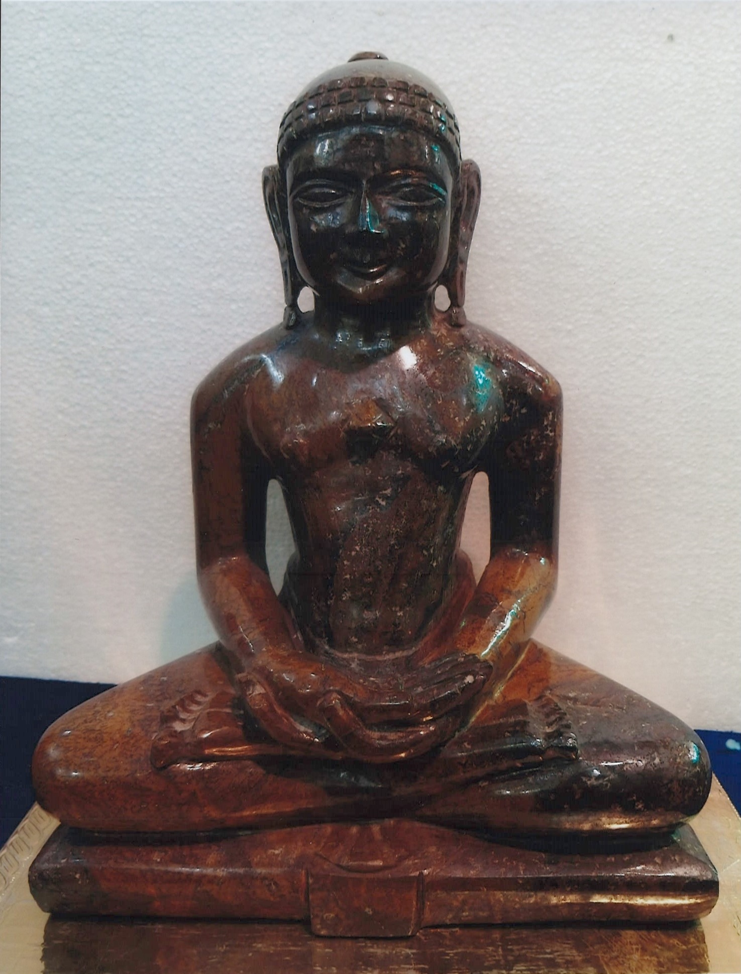 An amalgamation of different shades of brown characterizes this gorgeous idol. An innocent face with a glowing smile makes the statue divine. Well distinguished hands and feet along with the Padmasan posture give further definition to the Tirthankar’s supreme image. The mesmerizing quality of the Quartz Hematite Goethite rock draws you to this beautiful masterpiece.
