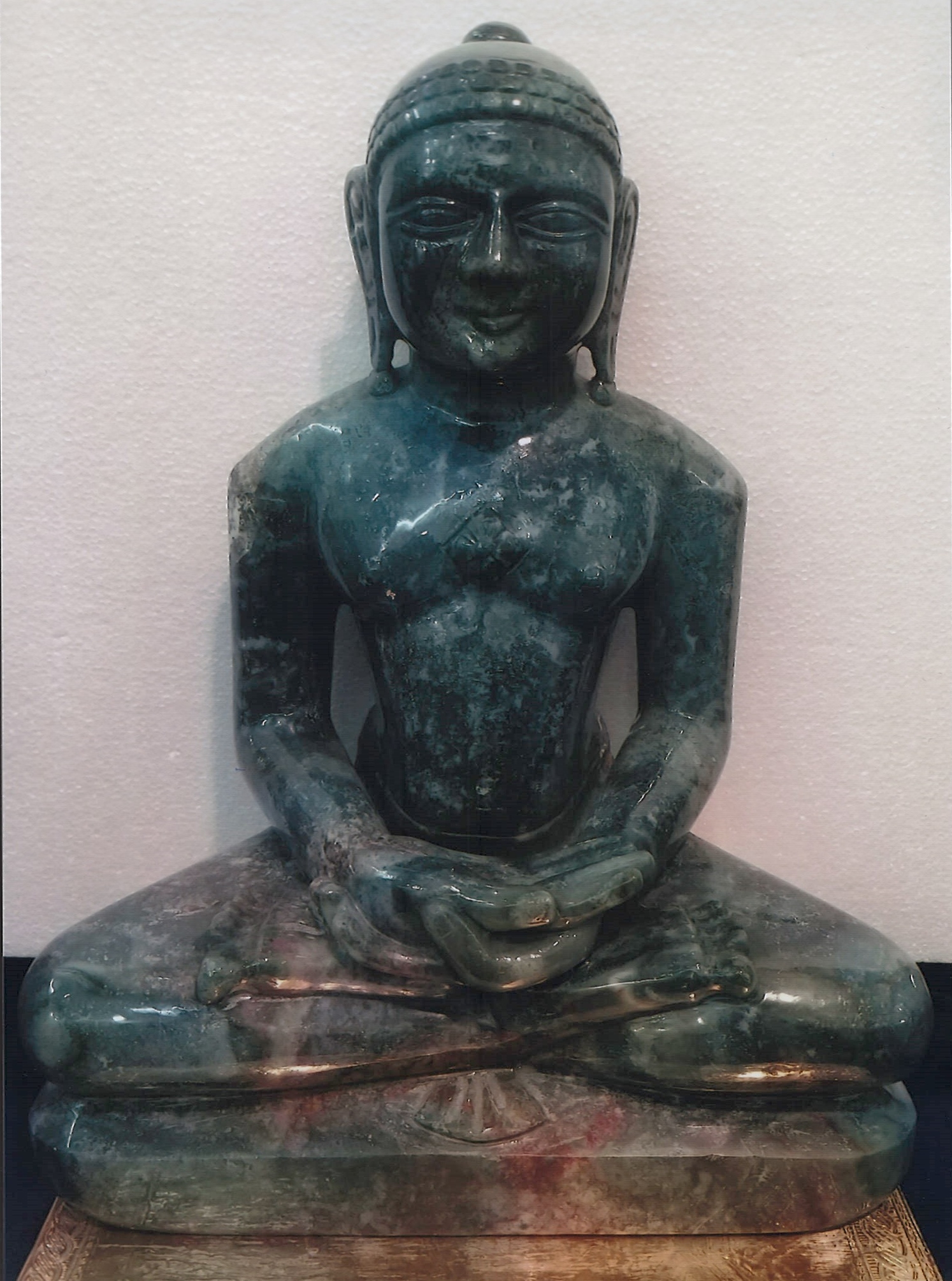 A fascinating representation of blue and green colors create such a radiant idol.the stone provides an exceptional array of the stone. The idol have exclusive body features which makes it an overall outstanding piece of art.idol is well depicted in padmasana position.