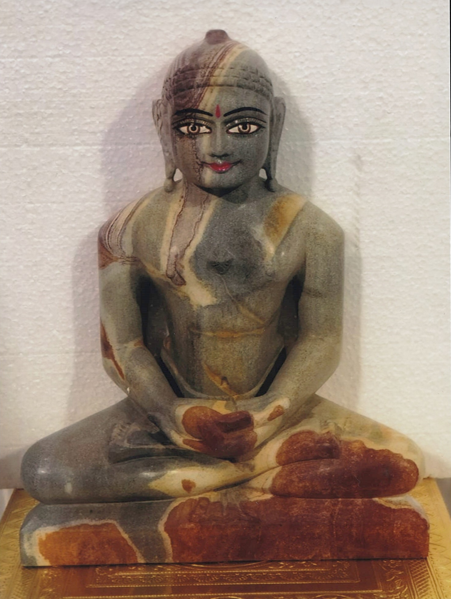 Perfect amalgmation of dark and light colors giving the statute a pleasant look. Brown and grey color add spark to the statute. Idol is indeed a fine piece of art depicting Tirthankara in a well placed posture of padmasana. Sandstone is a stone of creativity. It helps to build and strenghten the cohesiveness and solidarity within relationships.