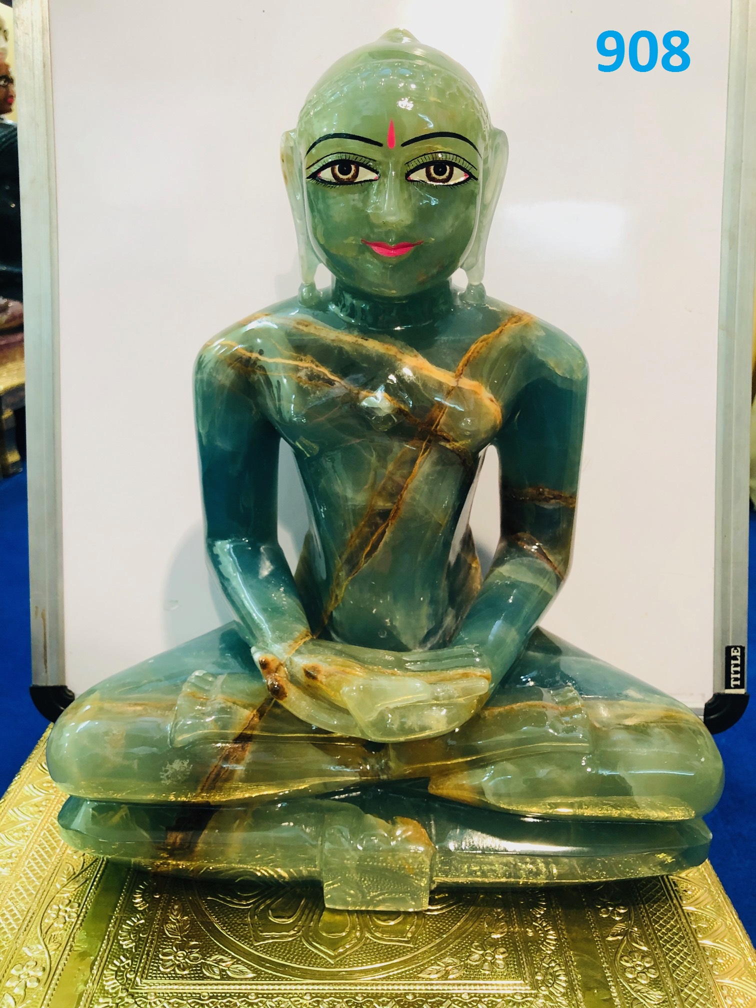 A greenish blue colored statue is a fine piece of Art. A well-defined "Sinhasan" platform holds the idol well in place. In general. Fluorite is a highly protective and stabilizing stone, useful for grounding and harmonizing spiritual energy. While working with upper chakras. Fluorite increases abilities and link human mind to universal consciousness.
