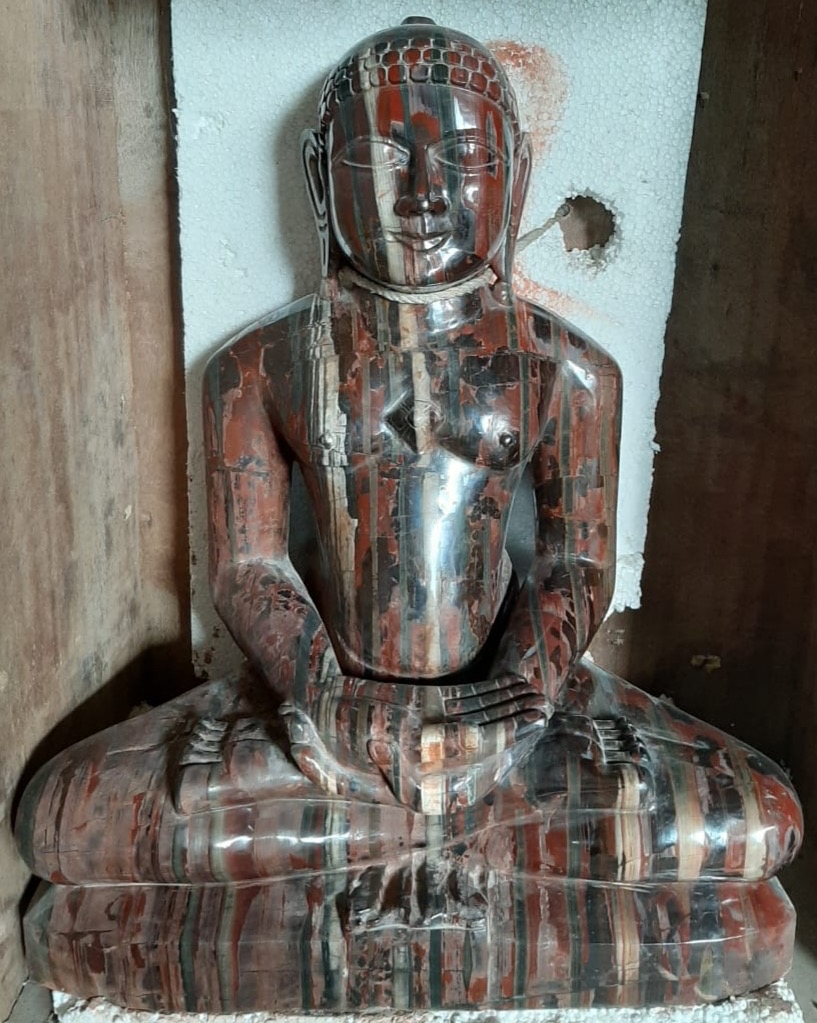 A fascinating red brown statue with an extremely expressive face is the highlights of this statue. Clearly defined eyes and lips, the deep eyebrows illuminate the face. A well balanced and postured statue possessing well chiseled body parts. Mookaite stone is a nurturing stone that supports and sustains during times of stress. It brings peace and feeling of wholeness.