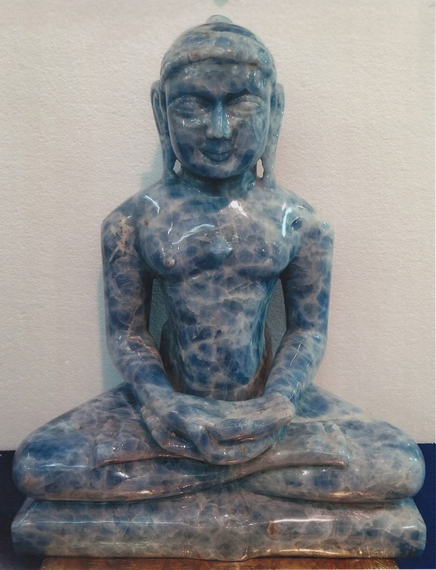 Harmoniously blended colors of different shades of blue give it a elegant and beautiful look. It exhibits a polychromatic extravaganza. A well-defined "Sinhasan" holds the idol well in place. Calcite is a spiritual stone that facilitates the opening of higher consciousness and physic abilities. It helps mind and body to remember soul experiences. It connects the emotions with the intellect.
