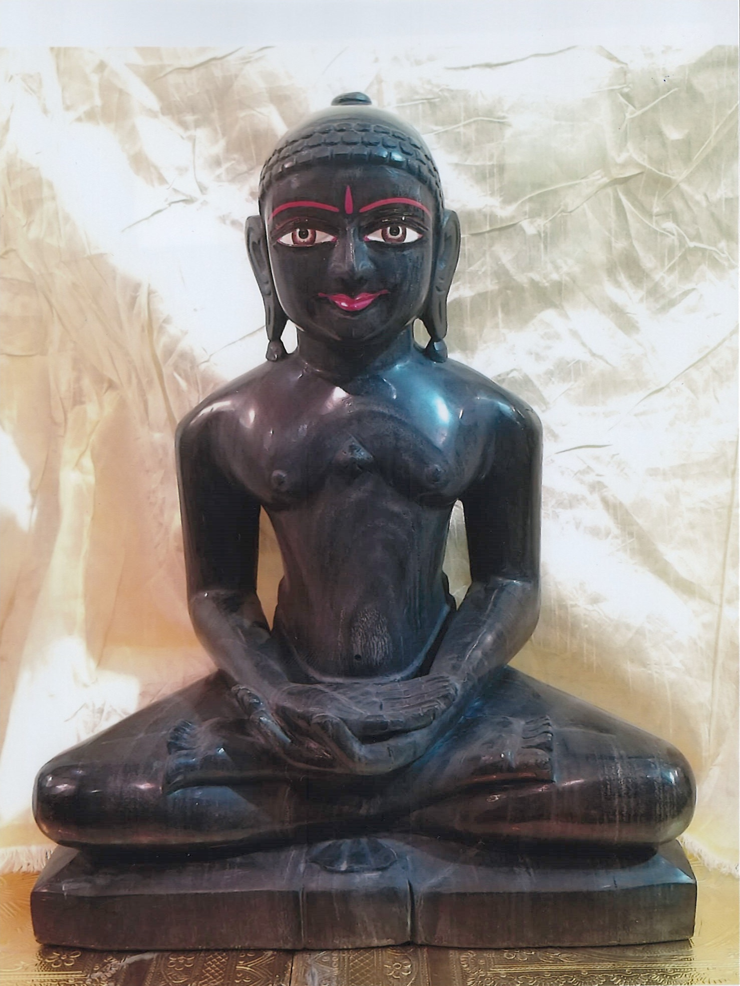Harmoniously displayed statue of "Thirthankara" with deep dark shade giving it a vibrant look and beautifully crafted idol in a well displayed "Padmasana" position. It is fine masterpiece indeed. This, Gemstone helps with mental longevity. It has the ability to soothe emotions, generate calm, and dispel stress. It is a very healing and grounding stone that fills you with feelings of security.