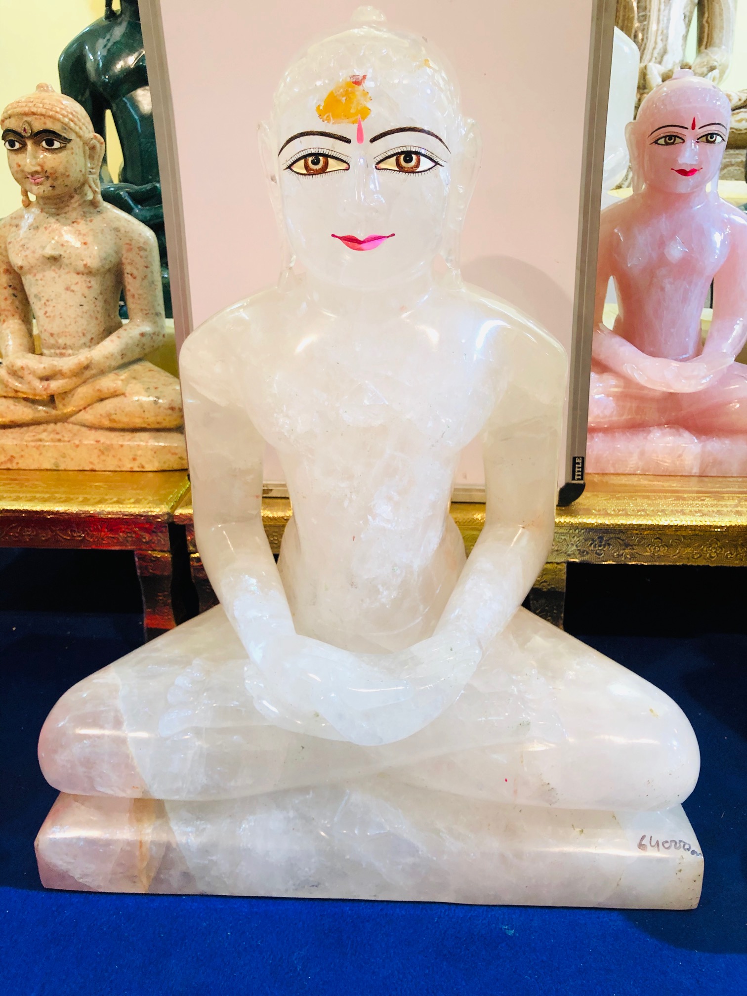 The statue is elevated by the high "Sinhasan" platform. The face is very calm and serene with the most divine expressions. Crystal Quartz enhances psychic abilities. It aids concentration and unlocks memory. Stimulates the immune system and brings the body into balance.